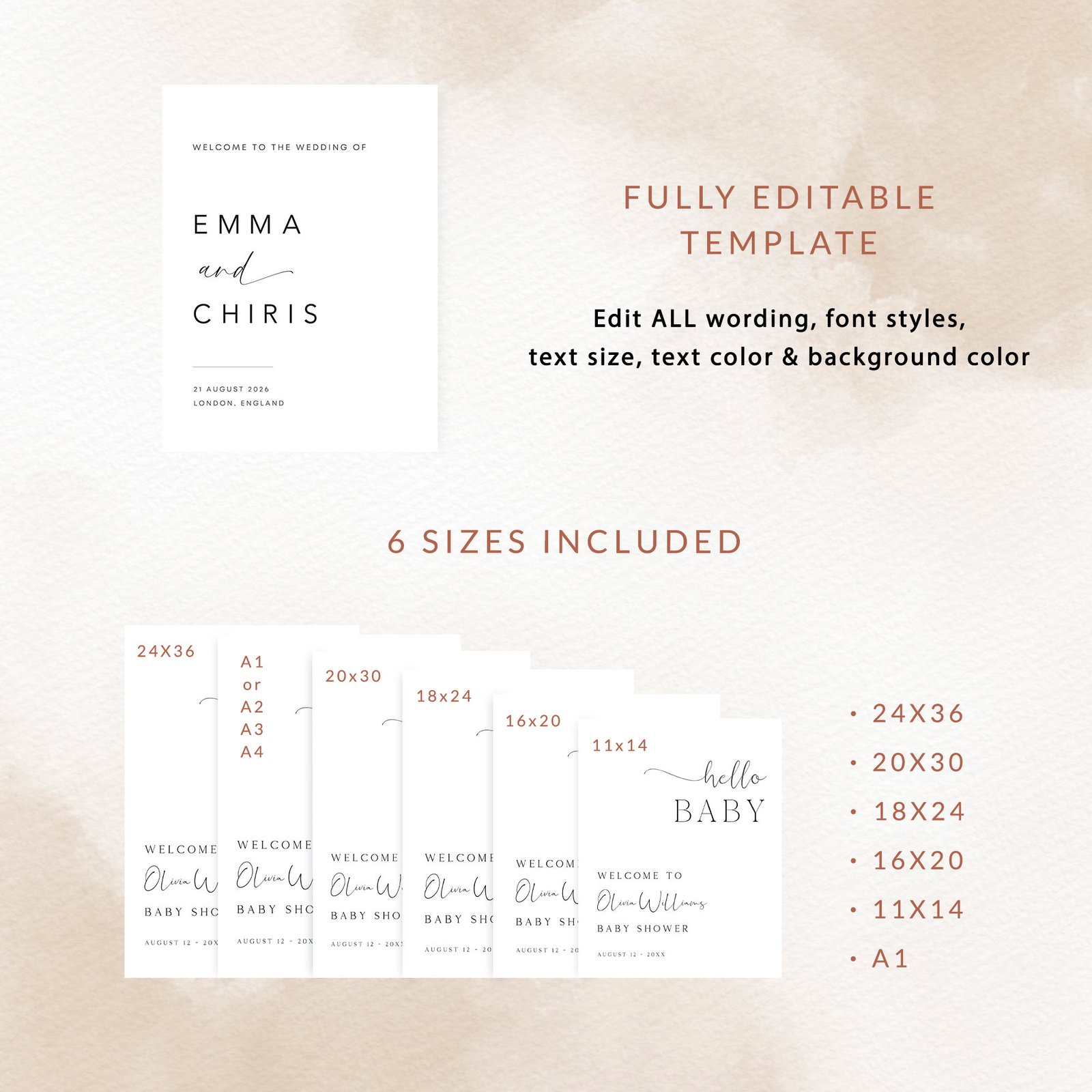 - Modern, Minimalist Design A clean layout with elegant fonts and simple icons ensures the attention stays on your baby’s milestones, making it perfect for any gender or party theme.